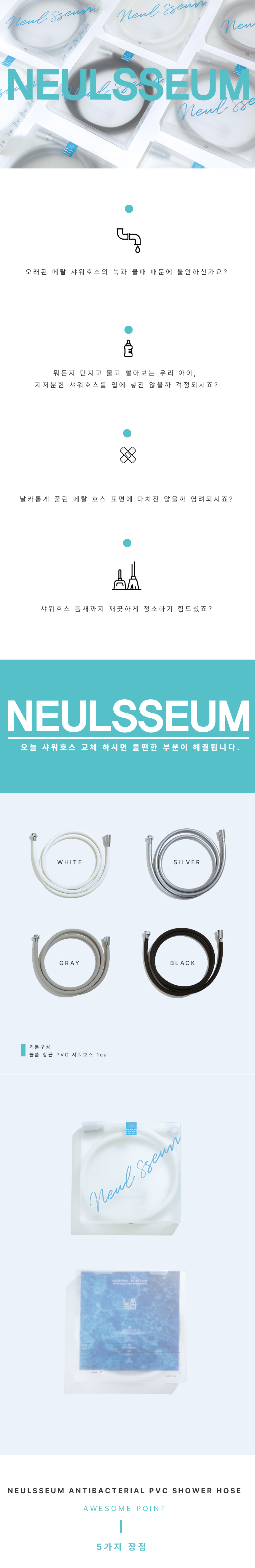 늘씀 항균 PVC 샤워호스_그레이_2m
