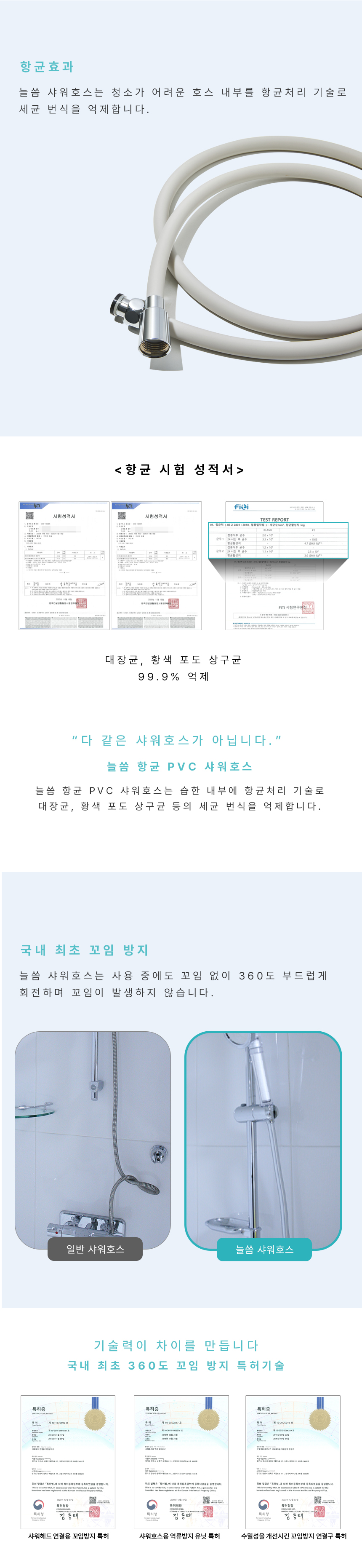 세균번식을 억제하는 호스내부 항균처리 기술로 안전한 샤워하세요