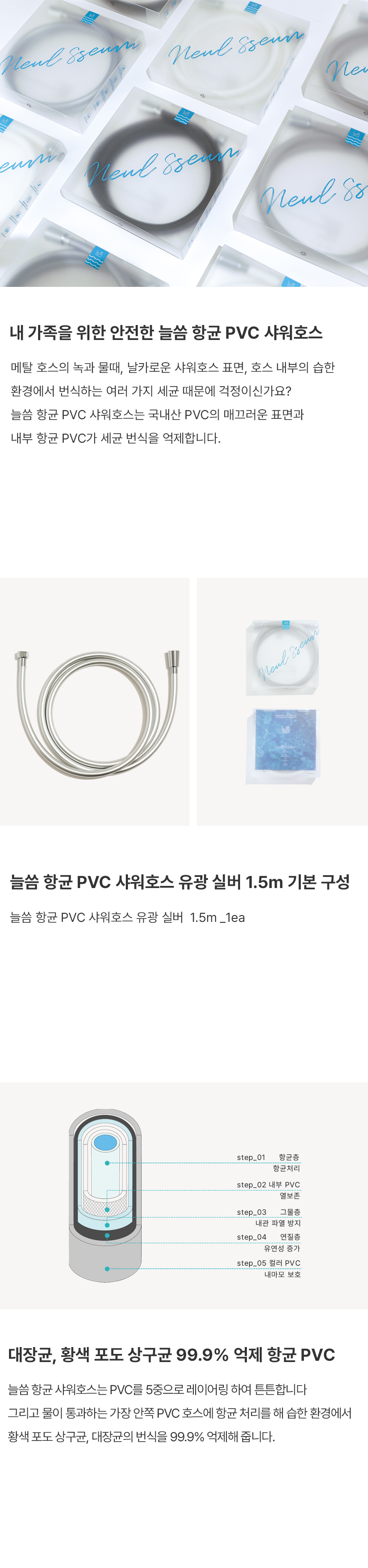 늘씀 항균 PVC 샤워호스_유광실버_1.5m