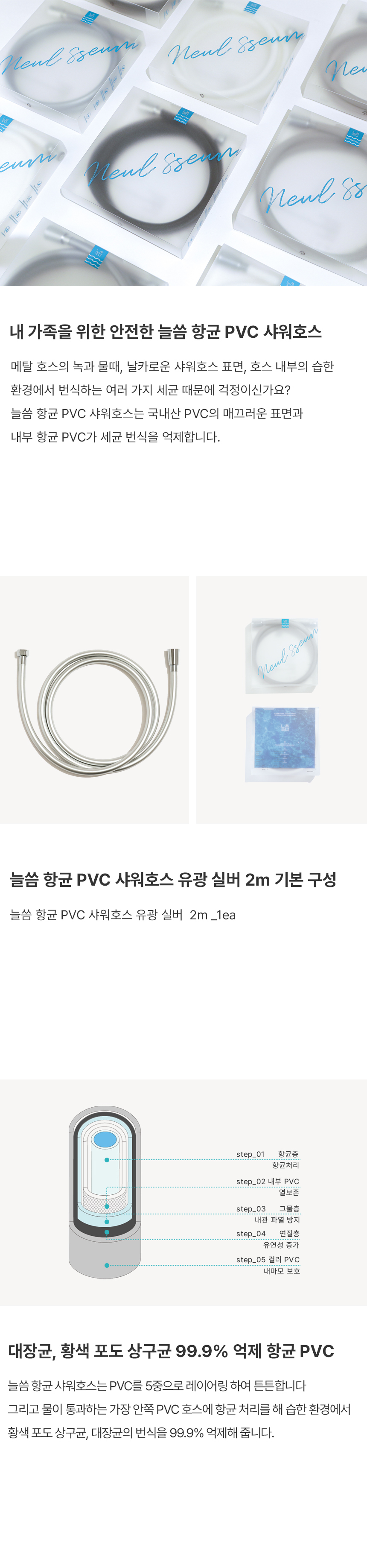 늘씀 항균 PVC 샤워호스_유광실버_2m